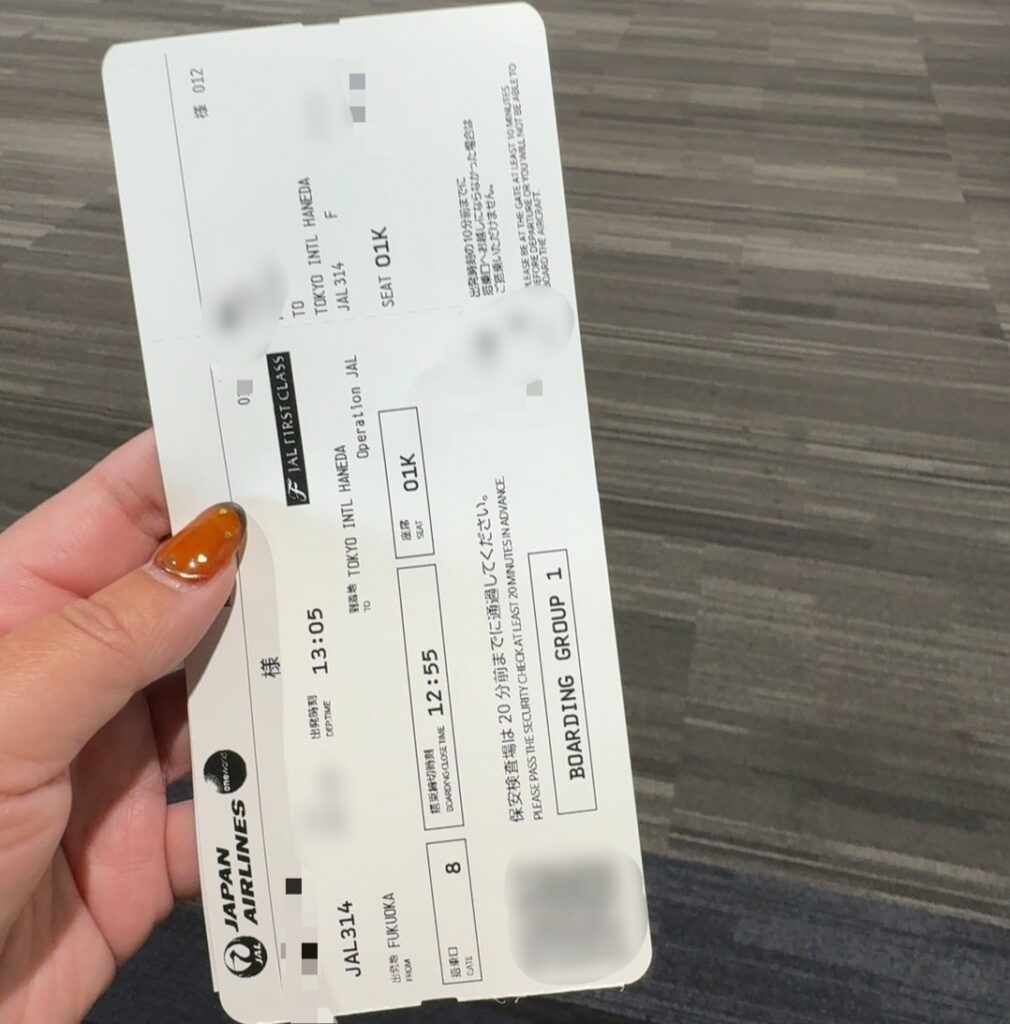そこで今回は、一度福岡まで飛び、福岡 → 羽田のファーストクラスに搭乗する行程を選択しました。